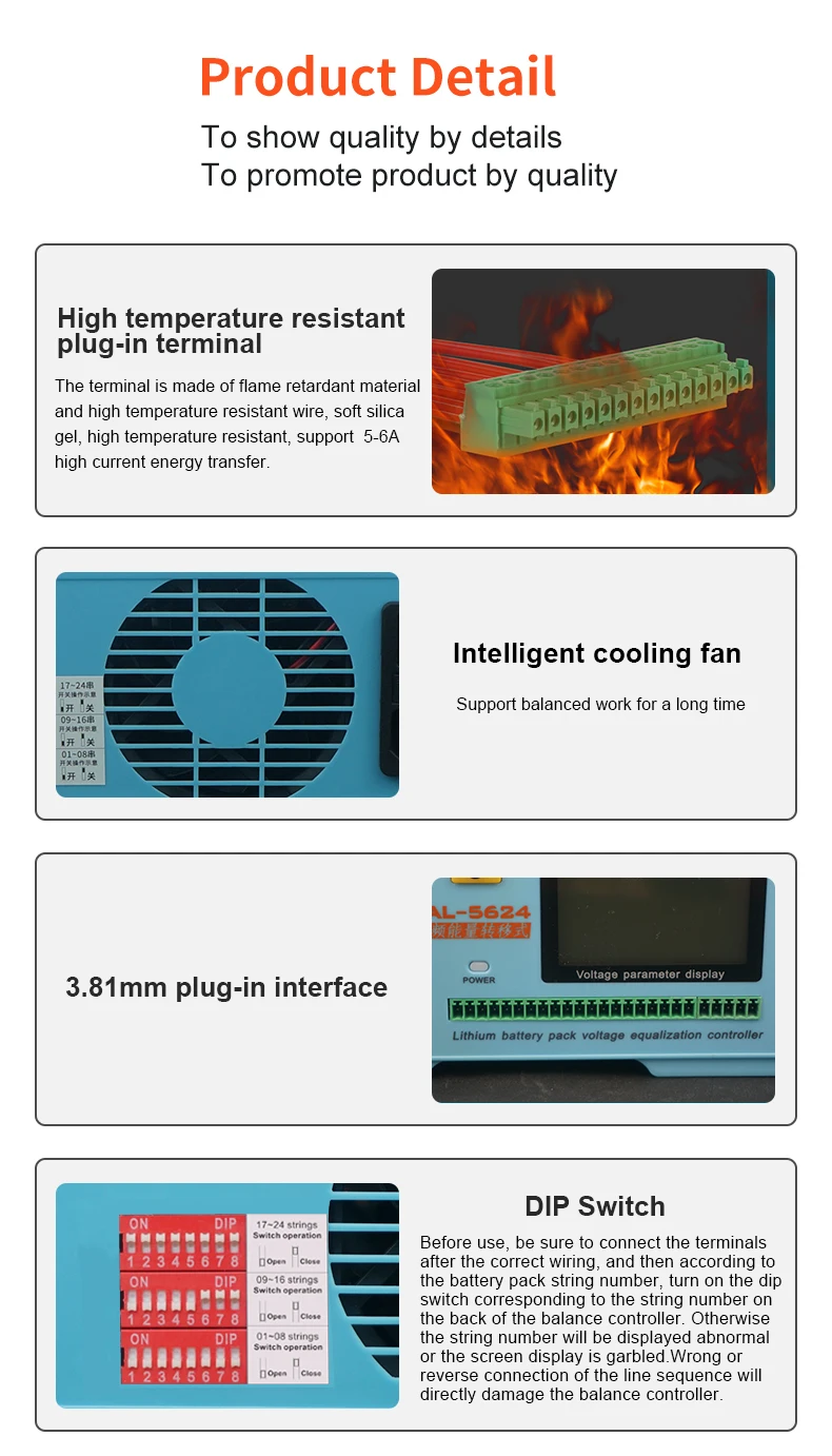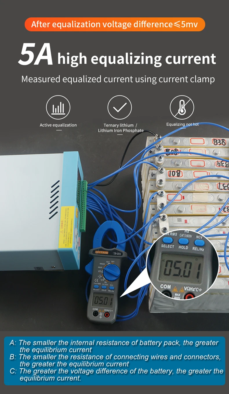 Il convient aux batteries au lithium ternaire de haute capacité et aux batteries au lithium fer phosphate, etc.Le courant d’égalisation maximum peut atteindre 5A et la différence de tension d’égalisation peut atteindre ≤30mV ; Un interrupteur de démarrage forcé est ajouté pour mieux résoudre le problème du mauvais effet d’égalisation.