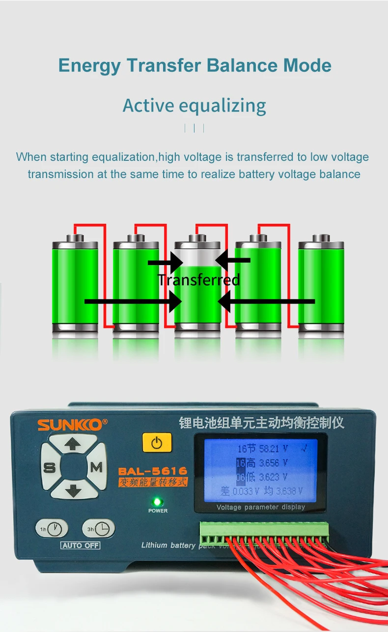 SUNKKO BAL-8616 2-16S 8A courant d’équilibre lithium lifepo4 batterie équilibreur actif égaliseur