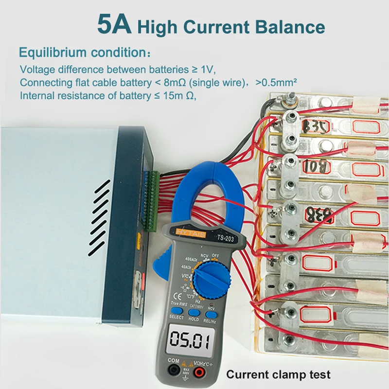 valeur de la batterie. Lors de l’équilibrage, elle peut détecter rapidement la tension de chaque chaîne de la batterie.