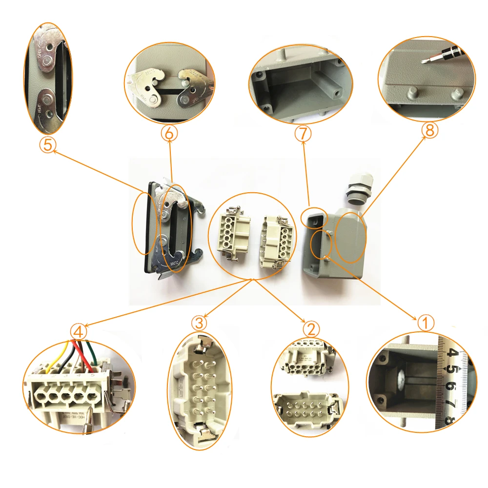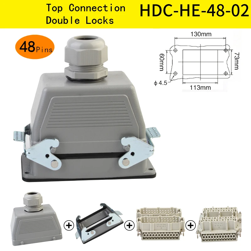 HDC-HE- : Numéro de série industriel, xx : nombre de broches, yy : 01=connexion latérale, 02=connexion supérieure