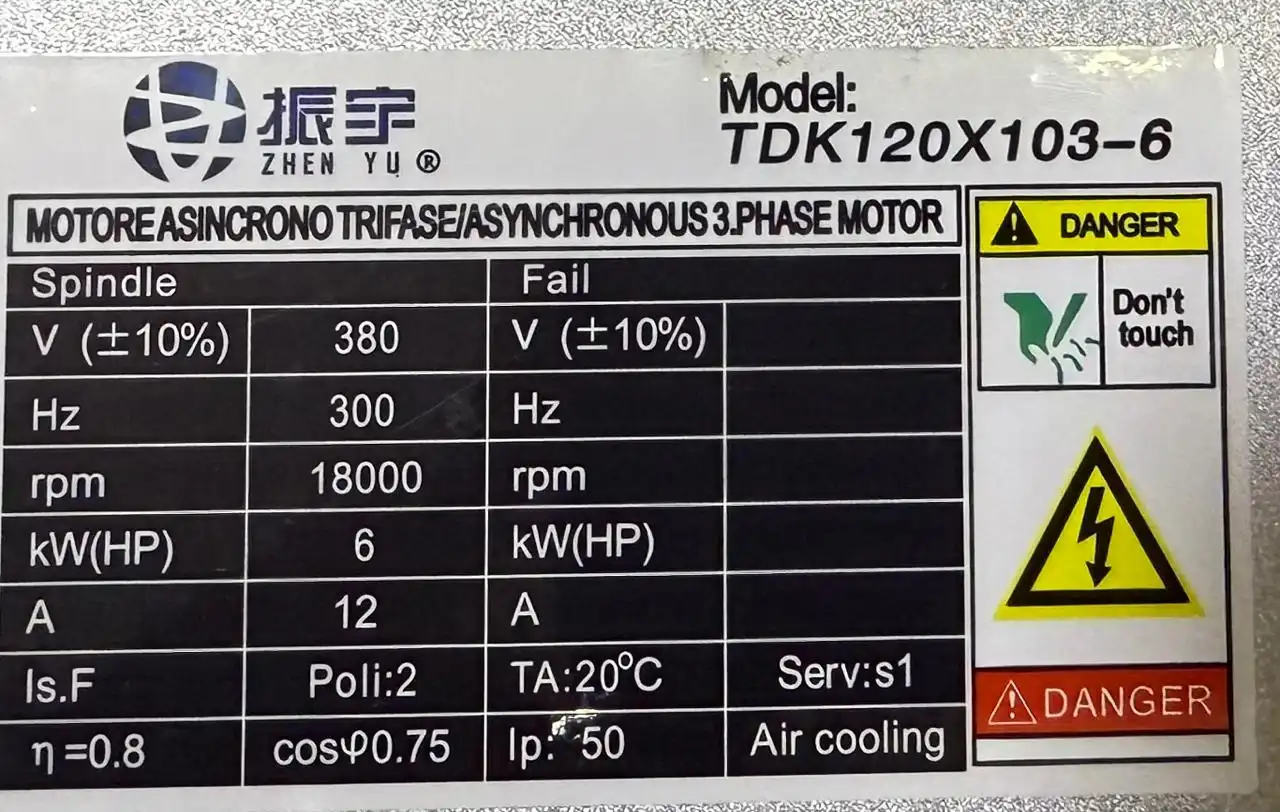le modèle TDK120X103‑6 (probablement référencé aussi sous GDZ120x103‑6), un moteur broche CNC air‑coolé de 6 kW utilisé couramment en fraisage, gravure ou usinage CNC :