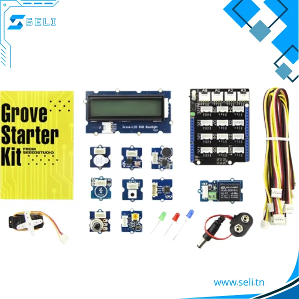 Ce kit de démarrage Grove V3 de Seeedstudio est composé de plusieurs modules de base permettant de réaliser rapidement et facilement des expériences et montages sans soudure.