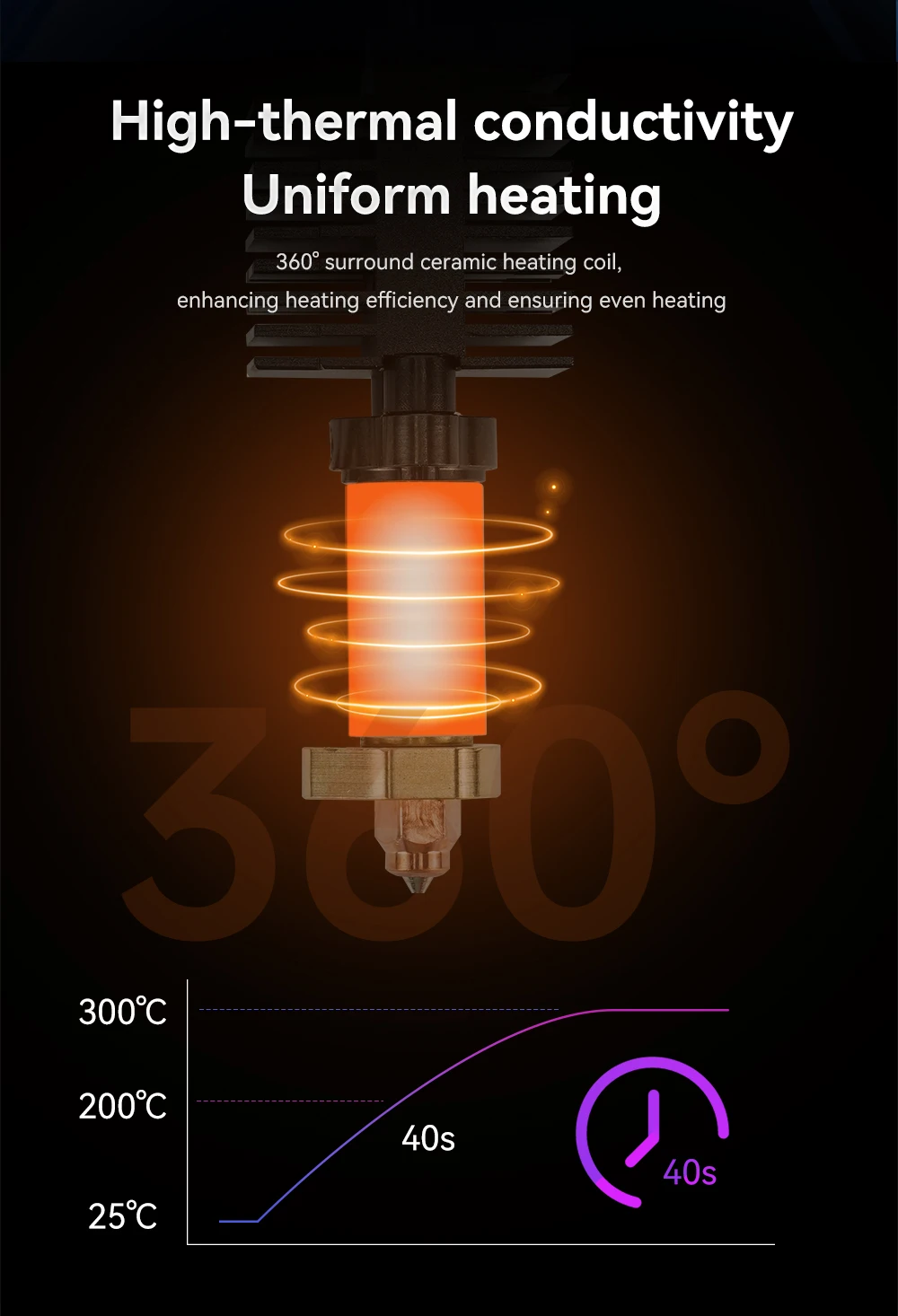 Le 360 innovant° La bobine chauffante en céramique environnante assure une répartition uniforme de la chaleur, éliminant les points froids et assurant une adhérence constante de la couche. Dites adieu aux surfaces enfilées, sous-extrusion ou inégales : chaque impression sort lisse et précise.