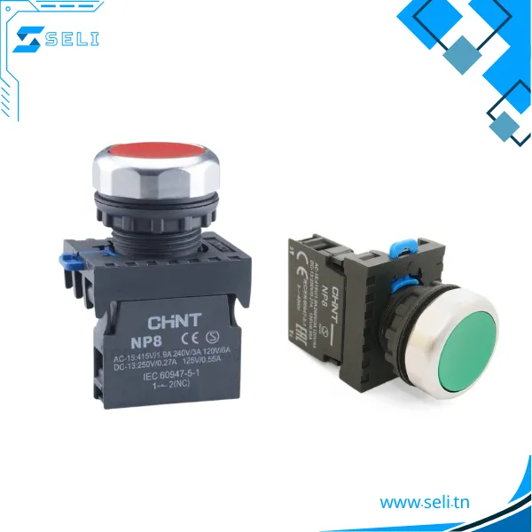 La série de boutons-poussoirs CHINT NP8 de 22 mm est un système de commande modulaire et robuste, conçu pour les applications d’automatisation industrielle et de machines. Conforme à la norme IEC/EN 60947-5-1, elle offre une protection IP66, une grande résistance mécanique et des blocs de contacts modulaires pour une installation flexible. Avec une tension d’isolement nominale jusqu’à 690 V et une capacité de courant de 10 A, le NP8 garantit un fonctionnement sûr et fiable même dans les environnements industriels les plus exigeants.