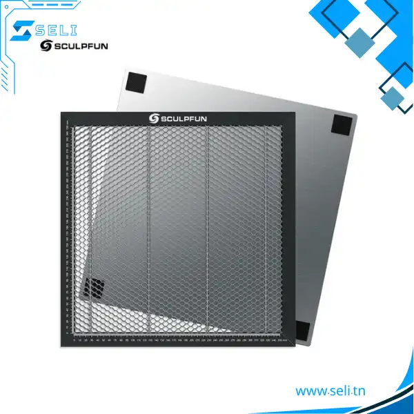 4. Panneau de protection de bureau en métal sûr : le panneau en nid d’abeille SCULPFUN est équipé d’un panneau de protection de bureau en métal, qui peut protéger la table des dommages causés par le laser, ce qui est très approprié pour de nombreux graveurs laser à diode différents.