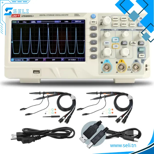 | Accessoires inclus | Cordon d’alimentation, câble d’impression USB 2.0, sonde passive UT-P03 x 2 (lx, 10x commutable, 60 MHz) |