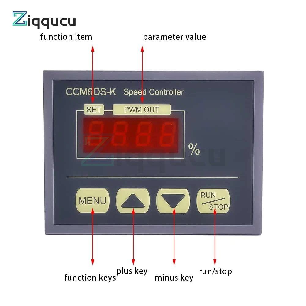 Réglé 3 :”000”-“080″, La vitesse minimale est réglable de 0 à 80 %, et est inférieure à la valeur de réglage de la vitesse maximale, la valeur par défaut est 0.