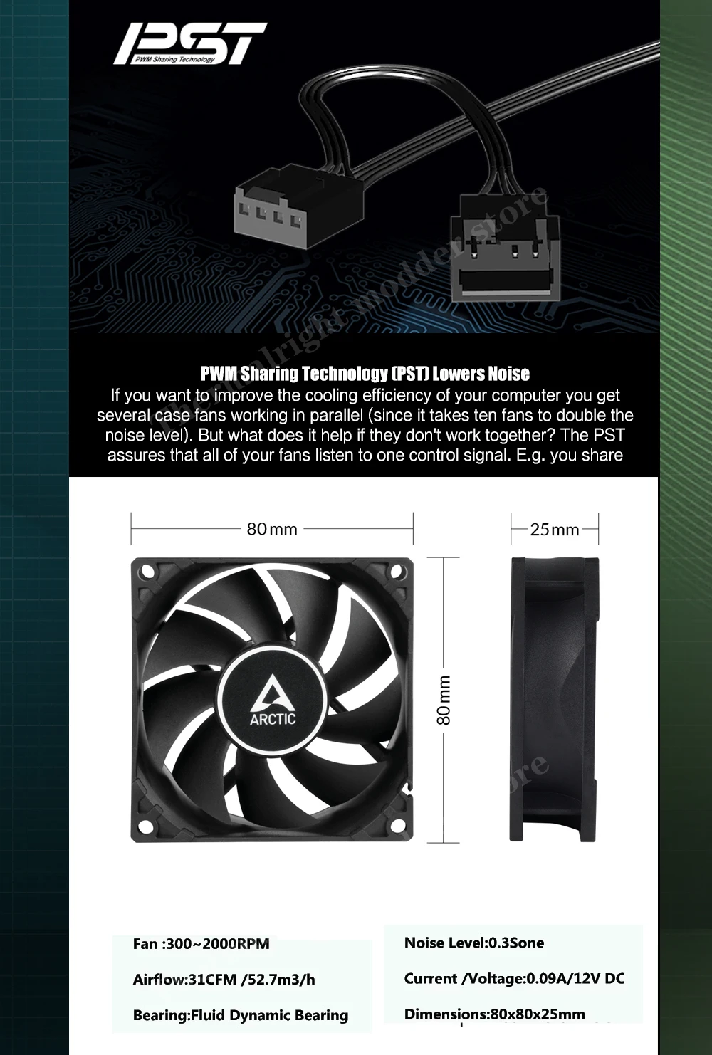 ARCTIC-Ventilateur de boîtier d’ordinateur F8 PWM PST 8cm, 4 broches PWM 2000 tr/min avec Andrjo, contrôle de la température, refroidisseur de processeur, ventilateur muet de refroidissement